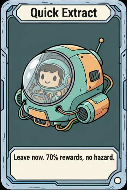 The card art brings each decision to life. Every Scavenge, Repair, Extract, and danger card has its own illustrated identity, and the mechanics behind them turn simple choices into genuine tension. The loop is simple to learn and hard to stop playing.