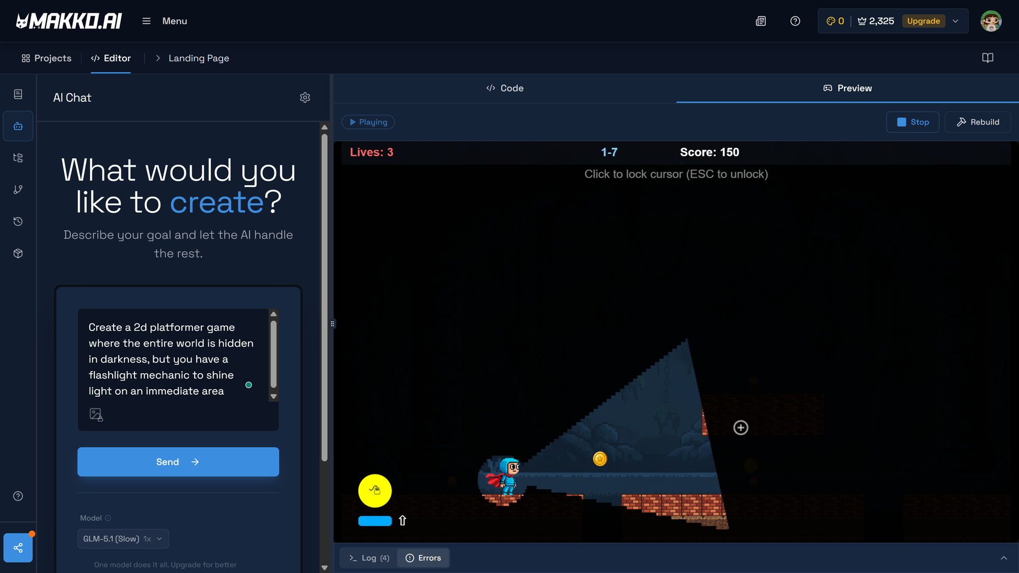 This is different from using a drag-and-drop game builder. Those tools still require you to understand how game systems work and manually connect them. Vibe coding means you describe the behavior you want and the AI assembles it. "The player should lose one heart when they touch an enemy" is a vibe coding instruction. The AI figures out what that means in terms of game logic, health systems, and collision detection. You never touch the code. This is the foundation of prompt-based game creation, building through description rather than implementation.