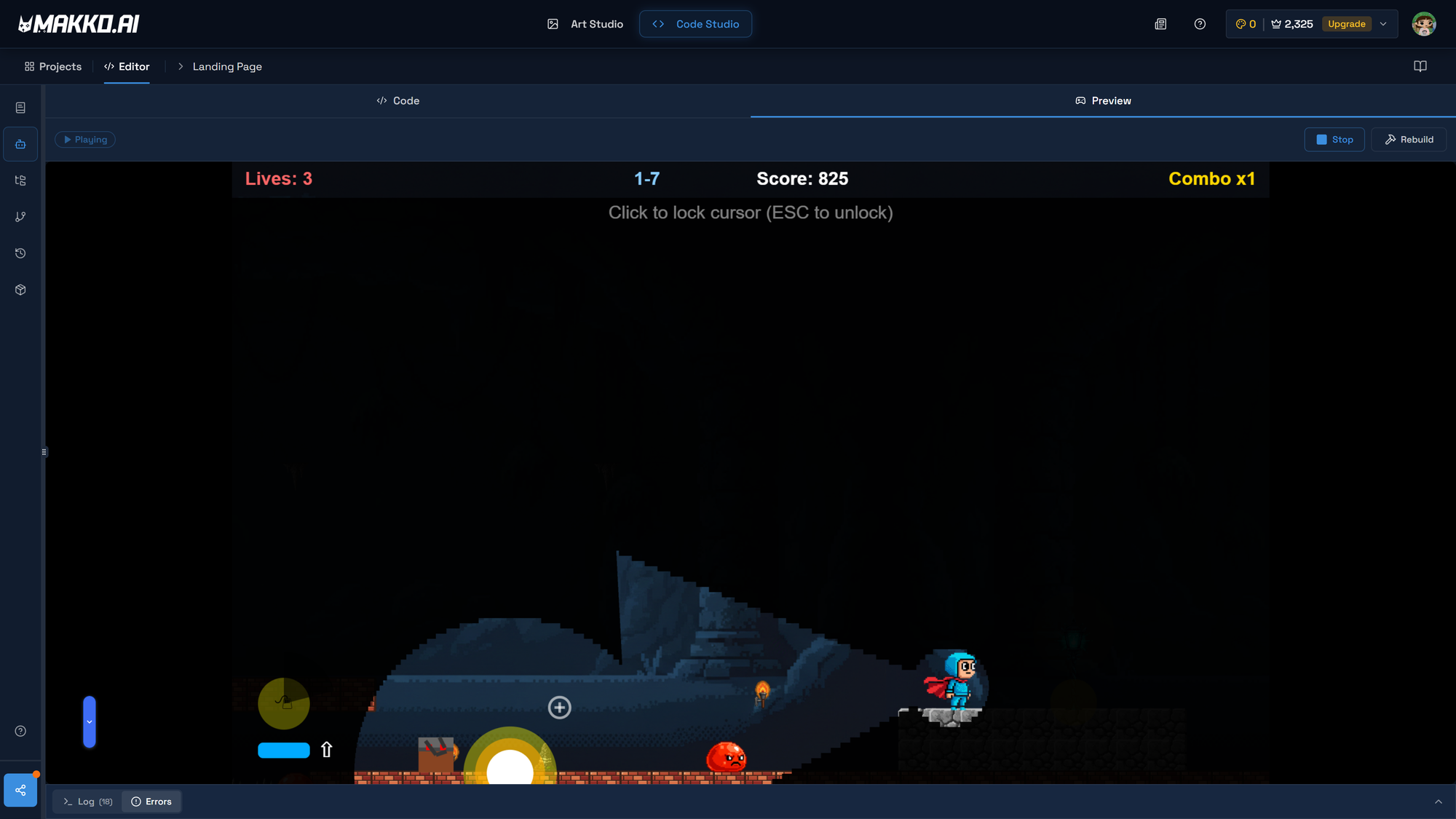When your art is ready, it moves into Code Studio through the Asset Library. You describe your game in plain English and the AI builds a playable prototype using the art you just created. You play it in your browser. You describe what needs to change and the AI updates it. You iterate until the game is what you wanted it to be.